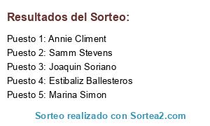 Lista de participantes: Estibaliz Ballesteros, Susana Chico, Fran Ganre, Samm Stevens, Marina Nutz, Annie Climent, Vane Sanchez, Marina Simon, Emi Delgado, Joaquin Soriano, Jose Manuel Miron, Esther Bayo.