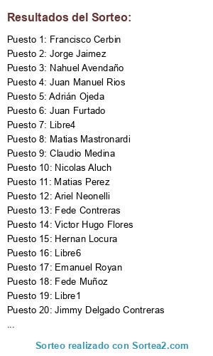 Resultados del sorteo: