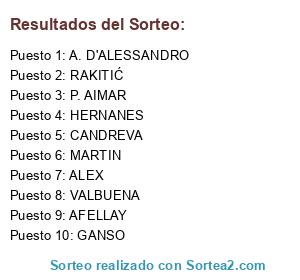 Lista de participantes: GANSO, HERNANES, VALBUENA, AFELLAY, A. D'ALESSANDRO, CANDREVA, ALEX, RAKITIĆ, P. AIMAR, MARTIN.