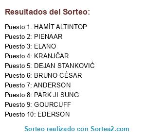 Lista de participantes: GOURCUFF, KRANJČAR, PARK JI SUNG, ANDERSON, EDERSON, BRUNO CÉSAR, HAMİT ALTINTOP, ELANO, PIENAAR, DEJAN STANKOVIĆ.