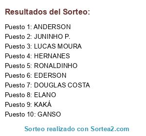 Lista de participantes: RONALDINHO, KAKÁ, HERNANES, GANSO, EDERSON, LUCAS MOURA, JUNINHO P., ELANO, DOUGLAS COSTA, ANDERSON.