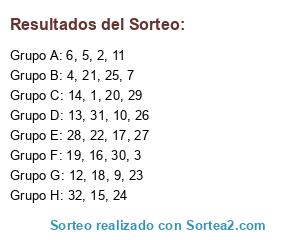 Resultados del sorteo: