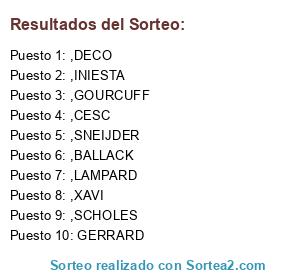 Lista de participantes: GERRARD, ,XAVI, ,LAMPARD, ,CESC, ,INIESTA, ,SNEIJDER, ,GOURCUFF, ,BALLACK, ,SCHOLES, ,DECO.