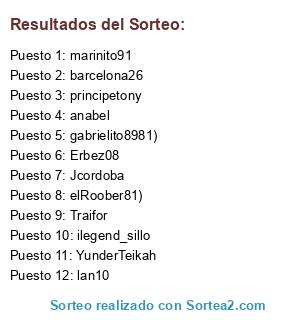 Lista de participantes: YunderTeikah, lan10, gabrielito8981), elRoober81), barcelona26, Jcordoba, ilegend_sillo, Traifor, Erbez08, principetony, anabel, marinito91.