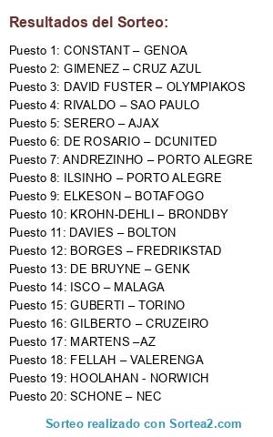 Lista de participantes: KROHN-DEHLI – BRONDBY, MARTENS –AZ, SERERO – AJAX, ILSINHO – PORTO ALEGRE, ANDREZINHO – PORTO ALEGRE, RIVALDO – SAO PAULO, GILBERTO – CRUZEIRO, ELKESON – BOTAFOGO, DE BRUYNE – GENK, DE ROSARIO – DCUNITED, GIMENEZ – CRUZ AZUL, ISCO – MALAGA, BORGES – FREDRIKSTAD, FELLAH – VALERENGA, DAVIES – BOLTON, SCHONE – NEC, GUBERTI – TORINO, CONSTANT – GENOA, DAVID FUSTER – OLYMPIAKOS, HOOLAHAN - NORWICH.