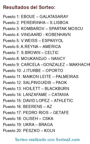 Lista de participantes: DAVID LOPEZ – ATHLETIC, PEDRO RIOS – GETAFE, V.WEISS – ESPANYOL, UKRA – BRAGA, J.ITURBE – OPORTO, HOILETT – BLACKBURN, BEERENS – AZ, LANZAFAME – CATANIA, A.REYNA – AMERICA, SALPINGUIDIS – PAOK, KOMBAROV – SPARTAK MOSCU, PESZKO – KOLN, EBOUE – GALATASARAY, OLISEH – CSKA, PEREIRINHA – S.LISBOA, CARCELA –GONZALEZ – MAKHACHKALA, MOUKANDJO – NANCY, MAIKON LEITE – PALMEIRAS, S.BROWN – CELTIC, VINGAARD - KOBENHAVN.