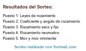 Lista de participantes: Leyes de rozamiento , Rozamiento seco y fijo , Coeficiente y angulo de rozamiento , Rozamiento mecanico.