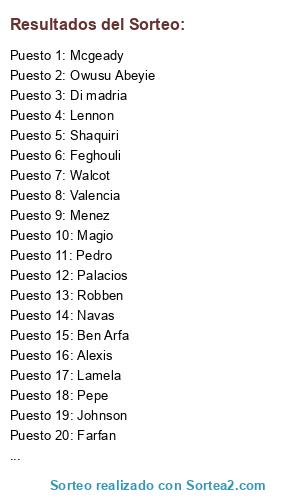 Resultados del sorteo: