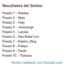 Lista de participantes: - Areides, - Pelayo, - Davitt, - Neo Metal Linx, - Kabron_King, - Lacosa, - Tsubasa, - Mais, - Hojo, - Javiorange.