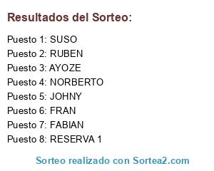Lista de participantes: SUSO, FRAN, RUBEN, NORBERTO, FABIAN, JOHNY, AYOZE, RESERVA 1.