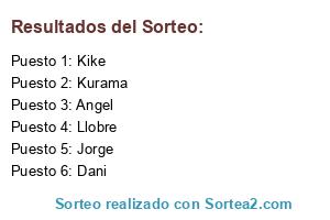 Lista de participantes: Jorge, Kike, Kurama, Angel, Llobre, Dani.