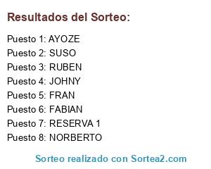 Lista de participantes: SUSO, FRAN, RUBEN, NORBERTO, FABIAN, JOHNY, AYOZE, RESERVA 1.