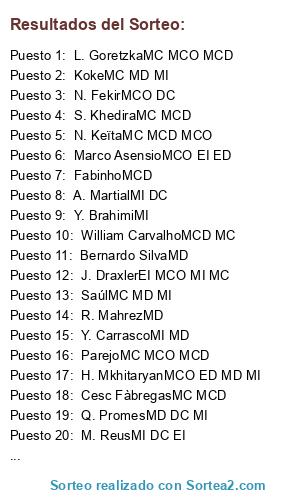 Lista de participantes: XABI ALONSO, CAMBIASSO, DAVID PIZARRO, FELIPE MELO, TOURE YAYA, MIGUEL VELOSO, GARGANO, CAMORANESI, MATUZALEM, WRIGHT PHILIPS, MALBRANQUE, MUNTARI, MILNER, SNEIJDER, SCHWENSTEIGER, SEMIOLI.