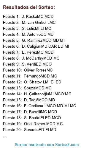Resultados del sorteo: