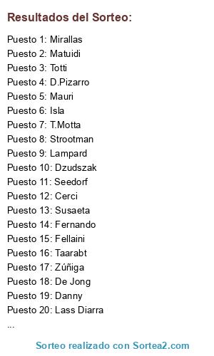 Resultados del sorteo: