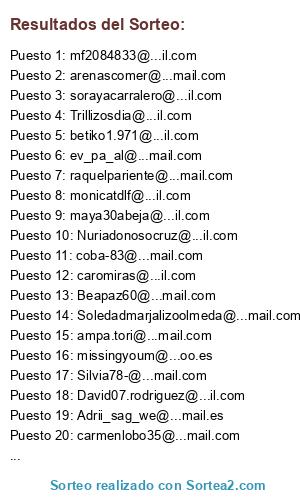 Lista de participantes: @Vanedu.vazluke, @elgrana5, @Arojasartacho, @sylviaserrano, @gemanova, @Nuriadonosocruz, @Tamvond87, @betiko1.971, @ampa.tori, @alinamarilenabedreag, @enecarmen77, @arantxacorao4, @Xiquinina_1984, @La.thathy, @David07.rodriguez, @cosmorena, @coba-83, @mf2084833, @vaquerogerman, @maya30abeja, @especol, @belenpacoymaria, @Ineescp, @lamejormota, @caromiras, @saramm_1982, @Beapaz60, @Susi.alexandra.21, @sonianavarro74, @carmenlobo35, @home.r1977, @mar15202, @Baranda12, @sandra-navarro, @evaramos84, @dianaad18, @Superbenru, @marnivel2, @Silvia78-, @arenascomer, @Patri_t10, @m.elena.barrera, @zanfir.cristina, @mavis, @Rivas12682, @Soledadmarjalizoolmeda, @Trillizosdia, @Tamara.luis.23, @Tamaramorenocrespo, @epcolino, @elenadelatorreibarzo, @Bermejo.silvia, @sorayacarralero, @cilena_2006, @Adrii_sag_we, @ev_pa_al, @ascensionmorena, @chusorange2014, @carolrobles85, @S.floresde, @Jginel74, @carolrobles85, @aranglez, @missingyoum, @raquelpariente, @huelvesleon, @Martinpm, @Martinpm, @hernandezlopezmarta, @vanesa1079, @ksaavedraparedes, @snunezfe, @diana_rm_, @monicatdlf, @almuu83, @gustavo.g.rio, @Vanevs82, @fernandezgarciaana, @klaranoguera, @Cristy-getafe.