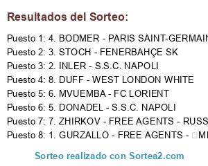 Resultados del sorteo: