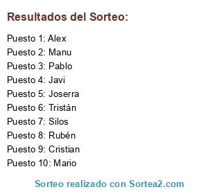 Lista de participantes: Rubén, Alex, Cristian, Tristán, Manu, Silos, Pablo, Joserra, Javi, Mario.
