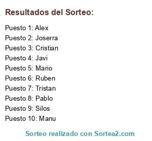 Lista de participantes: Silos, Joserra, Alex, Pablo, Ruben, Mario, Cristian, Javi, Tristan, Manu.