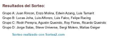 Lista de participantes: Luis Alfonzo, Sergi Molero, Rodri Pereyra, Felipe Racing, Luis Falco, Agustin Queirolo, Steve Universe, Lucas Joha, Ricardo Queirolo, Luis Tamarit, Enzo Molina, Juan Rincon, Matias Geiger, Jorge Salas, Roy Flores, Edwin Azang.
