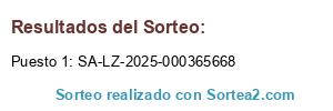 Este sorteo ha sido certificado por Sortea2. Sortea2 garantiza que: