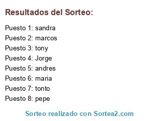 Lista de participantes: Jorge, maria, tony, marcos, sandra, tonto, pepe, andres.