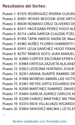 - Puesto 75: 83324 NUÑEZ RAMIREZ BRIAN ALEJANDRO DE Mexicali