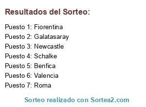Lista de participantes: Benfica, Valencia, Schalke, Roma, Fiorentina, Newcastle, Galatasaray.