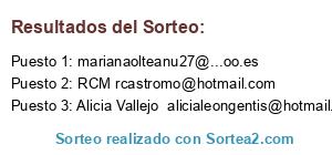 - Puesto 3: Alicia Vallejo alicialeongentis@hotmail.com