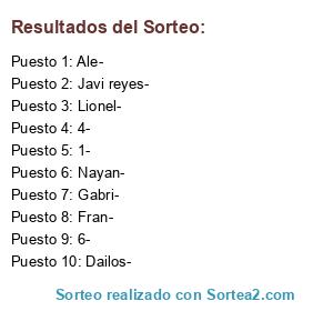 Lista de participantes: Fran-, Ale-, Dailos-, Gabri-, Lionel-, Javi reyes-, Nayan-, 1-, 4-, 6-.