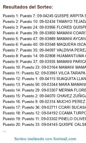 - Puesto 49: 09-02356 HUAYNACHO SURCO DAYNU - Puesto 60: 09-03698 MAMANI MAMANI ROGER