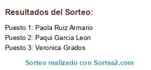 Lista de participantes: Aarón Soto Otero, Adela Aragon, Adela Flores Gallego, Adela Ruiz Ruiz, Adeli Barrera Perez, Adrian Garcia Garcia, Adriana Uribe, Afrika Miñon Roldan, Agurtzane Perez Loyola, Agustin Aguerri, Aida Dominguez Valls, Aida Gonzalez samprimo, Aida Romero Mecho, Ainara Alonso Blanco, Ainara Vicente García, Ainhoa Cuevas, Ainhoa Mesa Gomez, Aitana Zubeldia, Alba Callejo (Al Ca So), Alba Guzman Traver, Alba Marìa González Muñoz, Alba Muñoz Rosés, Alberto Vidal Troitiño, Alexandra Hortelano García, Alicia Cantero Manuel, Alicia Grande, Alicia Jiménez Gálvez, Alicia Lopez, Alicia Pozo García, Alicia Rubio, Allende Caro, Almu IA, Almudena Arriaza, Almudena German Martin, Amanda Mandi, Amanda Vilariño Martínez, AManuel Ro, Amparo Juan Tatay, Amparo Sánchez Méndez, Ana Aranda Gomez, Ana Arroyuelo, Ana Atencia Morales, Ana Belén, Ana Belén Cano Tébar, Ana Belen Gomez , Ana Belen Haro, Ana Belén López Corral, Ana Belén Nevado, Ana Belén Rodríguez, Ana Bermudez Pelaez, Ana Berrocal Martínez, Ana Ca Sar, Ana Carretero, Ana Castelblanque Rodriguez, Ana Cristelly, Ana Cristina Quevedo Lopez, Ana Cristina Sanchez Peña, Ana Escalante Escalante, Ana Eva García Martínez, Ana Garcia Arellano, Ana Inmaculada Navarro Rodriguez (Hadaly Rodriguez en Facebook), Ana Isabel Soto Ainsua, Ana Jimenez, Ana Julia Torcal Chavarri, Ana López, Ana M Ro, Ana Maria Beitia Pastrian, Ana Maria Celdran, Ana María González Benito, Ana María Gutiérrez, Ana Maria Navarro Moreno, Ana Maria Navarro Regueira, Ana Maria Perez Monterde, Ana Maria Ramos, Ana Maria Rivas Rivas, Ana Maria Tirado Vèlez, Ana Merino Nolla, Ana Nogues Ibarz, Ana Polo en facebook. Nombre real Ana Sampietro Quilez, Ana Rodríguez Parron, Ana Romero Ubeda, Ana Rosa Morant Dominguez, Ana Rubio, Ana Salas Gil, Ana Sanchez Del Ama, Ana Sanchez Muñoz, Ana Sanchez Nuñez, Ana Silva Martin, Ana Solorzano Roso, Ana Teresa Alvarez Cuesta, Ana Trúfula, Ana Ubeda, Ana Valero Garcia, Ana Villar Solla, Anabel Garcia Hernandez, Anabel Giménez Sanchís, Anabel Llorens, Anabel Vazquez Sanchez, Anais Calleja Gomez, Anaïs Pérez, Andrea Lustemberg, Andrea Rodriguez, Andres Perez, Andrés Villalón Rodríguez, Ange Cofer, Angel Barbero Calzado, Angel Garcia Lopez, Angela Chamizo Castilla, Ángela María Wizner de la Rubia, Angela Medina Brioso, Angela R. Valles, Angeles Casas Robles, Angeles Diaz Baena, angeles nuñez sainz de la maza, Angelica Alcala Escribano, Anna Bru De Sala, Anna Garcia Sola, Anna Gili Soldevila, Antonia Granados, Antonia Hurtado García, Antonia Mari Sosa lopez, Antonia Rueda Murillo, Antonio Garcia, Antonio Garcia Hortelano, Antonio Infantes García, Antonio Rc, Araceli López Cañete, Araceli Rubio Montejano, Arantxa Jato, Arantxa Sanchez Colmenero, Aranzazu Lopez Sanchez, Arisbe Huertas Morilla, Aroa Fayos, Aroa Guerra Peláez, Aroa Navarro Tatay, Aroa Ramirez Rodriguez, aroa susino vilchez, Artza Bolufer, Ascen Villa Alises, Asuncion Mañogil de Haro, Aurelio Valero, Aurora Anton, Aurora Arano Navarro, Aurora Garcia Perez, Aurora Gómez, Aurora Guerrero Hurtado, Aurora Llanos, Aurori Tejerina, Azahara Gomez, Azucena Blanco, Azucena Gallardo Piron, Azucena Rodriguez Rodriguez, Barbara Garcia Caparros, Bàrbara Llabrés Llabrés, Barbara Ramirez Lopez, Bea Adán Carabantes, Bea García Zurrón, Bea Rodriguez, Bea Spice Mill, Beatriz Arreba del Pino, Beatriz de la O, Beatriz Fernandez Lopez, Beatriz Fervenza, Beatriz Gamazo, Beatriz Lopez Novoa, Beatriz Martinez Contreras, Beatriz Olaiz, Beatriz Pérez Blanco, Beatriz Pérez Ortega, Beatriz Perez Prego, Beatriz Rechi, Beatriz Rodriguez Baza, Beatriz Rua Pena, Beatriz Ruiz Hidalgo, Beatriz Ruiz Torrente, Beatriz Torres Queiruga, Beatriz Vaello Piera, Bee Destiny, Bego Bgo Bgo, Begoña Baza Garcia, Begoña Cerezo Alonso, Begoña Couto, Begoña Soria Blan, Belen Caballero Navarro, Belen Gomez, Belen Gonzalez, Belén Martí Albert, BELEN PALOMERO MIGUEL, Belen Parra Barranquero, Belen Rubio Salguero, Belen Rufas Abenia, Beni Trujillo, Benigna Tasende, Bibiana Espuch Limiñana, Blanca Cuadri Tome, Blanca Diez Sedano, Brenda Marrero Maestro, Bruno Castro Lara, Calzados Carrera, Caminin García González, Candelaria Espina Marchena, Candy Mendez Burel, Caraca Cotan Silva, Carles Vilanova, Carlos Vila Montolio, Carme Nin, Carmen Amor Ruiz, Carmen Bonafé Ramos, Carmen Castilla López, Carmen Diez, Carmen Maria Torres, Carmen Paredes, carmen puig, Carmen Rodriguez Avellaneda, Carmen Trassierra Villalba, Carol Benítez, Carol Wizner Rubia, Carolina Peña, Carolina Pozo García, Carolina Roger Manzano, Carolina Sánchez, Carolina Usa'Torres, Carolina Velazquez Cobo, Casi Raúl Lobato Gil, Caste Lopez, Ceci Marcela Loyola, Cecilia Fabre Garcia, Cecilia Palanca Terrádez, Cecilia Sanchez Rivera, Celeste Iberbure Sanz, Celia De Santiago, Celia Ruiz Barragán, César Gf Rivero, Chari Cuadri tome, Chari Rechi, Charo Gil, Charo Palma Ortiz, Charo Romero Álvarez, Chelo Alvarez Perez, Chica Morena, Chito Mordisquitos, Christina A. Miralles Vernon, Cifu Cifu, Cinthia Garcia, Cintia Beigbeder Sánchez, Clara Agusti Encinas, Clara Jiménez Sanchez, Clara Muñoz Delgado, Clara Ribot, Clara Sanchez Samper, Complementos Infantiles Eli Coello, Concepcion Matias Simarro, Concha Gallardo, Conchi Garcia, Conchi Prisuelos, Conchii Lora, Coral Alvarez Almirante, Corin Pichardo, Covadonga Reverte, Cris Gil, Cris Ivars Torres, Cris López, Cristian Matias Lopez, Cristina A.Torre, Cristina Añón Rodríguez, Cristina Cabello Bellido, Cristina Crs, Cristina Diez García, Cristina Estable, Cristina Freire Izquierdo, Cristina Garcia Gisbert, Cristina Garrido, Cristina Gonzalez Bernal, Cristina Gonzalez Rubio, Cristina Jimenez, Cristina Laguna Bellon, Cristina Lozano Sanchez, Cristina Maria Rodilla Fernandez, Cristina Martinez, Cristina Martinez Paredes, Cristina Obregon, Cristina Obrero Bueno, Cristina Perujo Melgar, Cristina Pomares Navarro, Cristina Prieto Cobacho, Cristina Rodrig