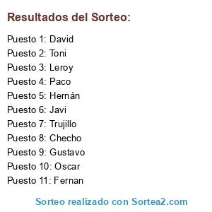 Lista de participantes: Hernán, Checho, Gustavo, Javi, Toni, Oscar, Fernan, Trujillo, Leroy, Paco, David.
