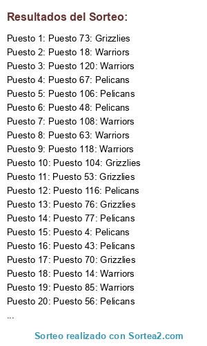 Resultados del sorteo: