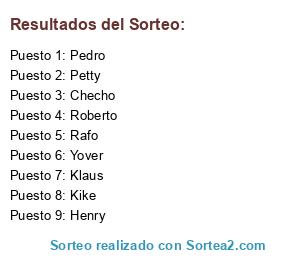 Lista de participantes: Rafo, Kike, Henry, Roberto, Checho, Yover, Klaus, Pedro, Petty.