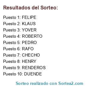 Lista de participantes: RAFO, KLAUS, PEDRO, DUENDE, HENRY, YOVER, ROBERTO, FELIPE, CHECHO, RENDEROS.