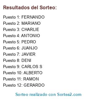 Lista de participantes: GERARDO, CHARLIE, DENI, MARIANO, JUANJO, JAVIER, ANTONIO, RAMON, PEDRO, FERNANDO, CARLOS S, ALBERTO.