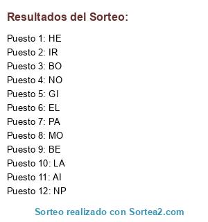 Lista de participantes: LA, AI, IR, BE, PA, MO, GI, HE, BO, NO, NP, EL.