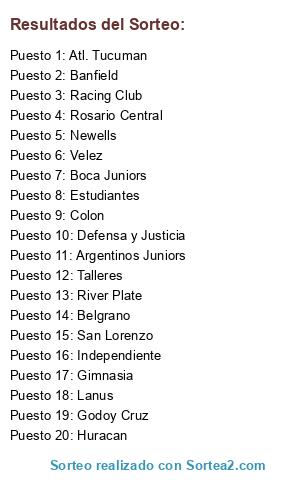 Resultados del sorteo: