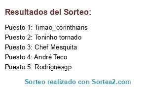 Lista de participantes: Toninho tornado, Chef Mesquita, Timao_corinthians, André Teco, Rodriguesgp.