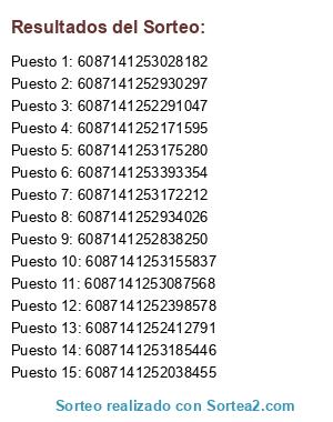 Resultados del sorteo: