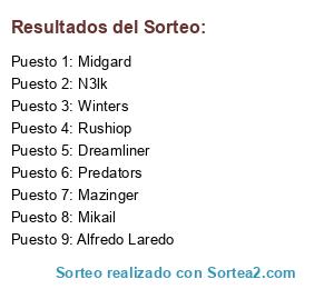Lista de participantes: Winters(3 participaciones), Rushiop(3 participaciones), Dreamliner(3 participaciones), Mikail(3 participaciones), Mazinger(3 participaciones), N3lk(3 participaciones), Alfredo Laredo, Predators, Midgard(3 participaciones).