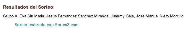 Lista de participantes: Eva Sin Maria, Jose Manuel Nieto Morcillo, Juanmy Gala, Jesus Fernandez Sanchez Miranda.
