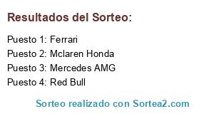 Lista de participantes: Mercedes AMG, Ferrari, Red Bull, Toro Rosso, Williams, Force India, Sauber, Lotus, Mclaren Honda, Manor.