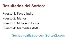 Lista de participantes: Mercedes AMG, Ferrari, Williams, Red Bull, Force India, Lotus, Sauber, Toro Rosso, Mclaren Honda, Manor.