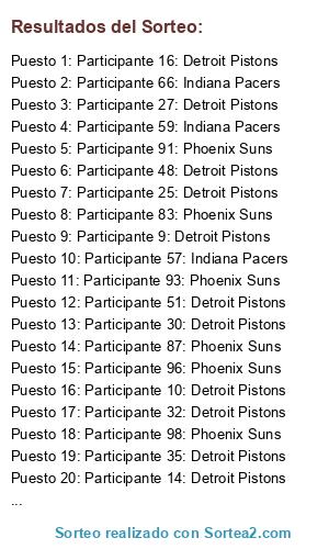 - Puesto 1: Participante 16: Detroit Pistons