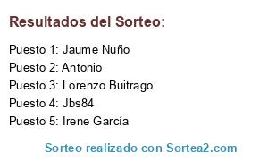 Lista de participantes: Raul Anguita, Jbs84, Alba del Villar, Viviana Santos, Irene García, Antonio, Macho_Iberico, Trialvaro, Jaume Nuño, Lorenzo Buitrago, Cedric Escoriza.