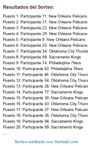 - Puesto 26: Participante 2: New Orleans Pelicans