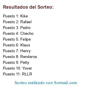 Lista de participantes: RLLR, Renderos, Kike, Klaus, Petty, Yover, Henry, Rafael, Felipe, Checho, Pedro.