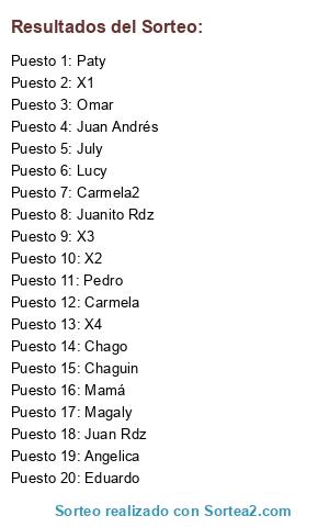 Lista de participantes: July, Carmela, Juanito Rdz, Angelica, Chago, Juan Rdz, Juan Andrés, Pedro, Mamá, Magaly, Eduardo, Paty, Lucy, Omar, Chaguin, Carmela2, X1, X2, X3, X4.